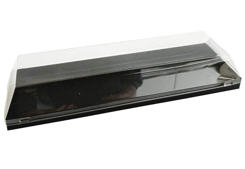 Boîte à fromage pour 2 personnes. Cet emballage en carton noir vous permet de réaliser de petits plateaux dégustation. Son couvercle transparent permet de visualiser des produits avant achat. Design épuré et stockage facile : plateaux livrés à plat, couvercles empilables.